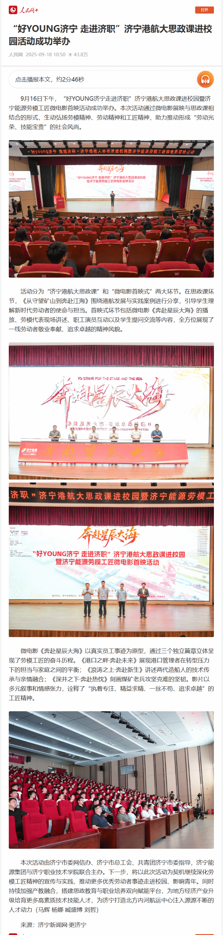 人民網(wǎng) | “好YOUNG濟(jì)寧 走進(jìn)濟(jì)職”濟(jì)寧港航大思政課進(jìn)校園活動(dòng)成功舉辦